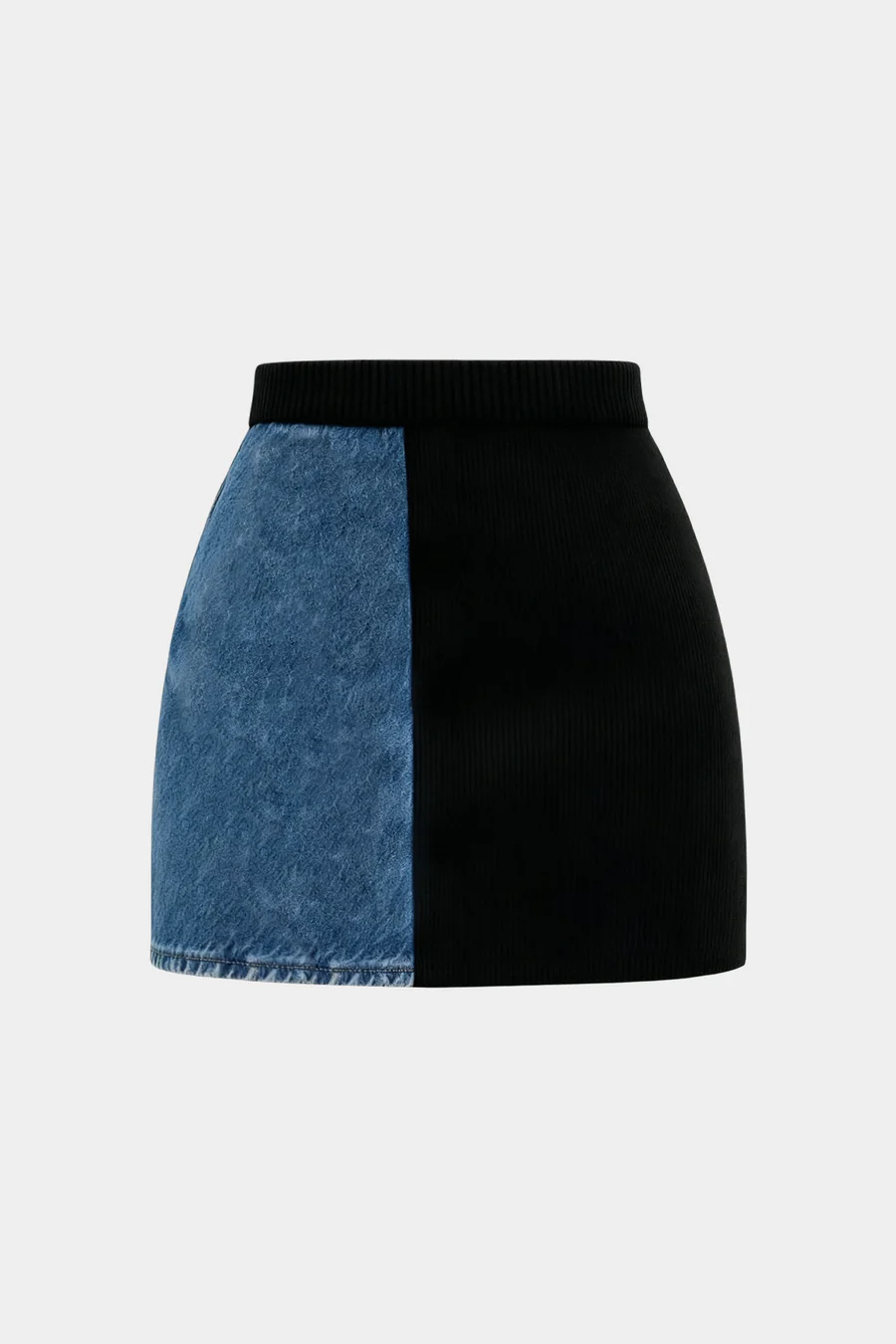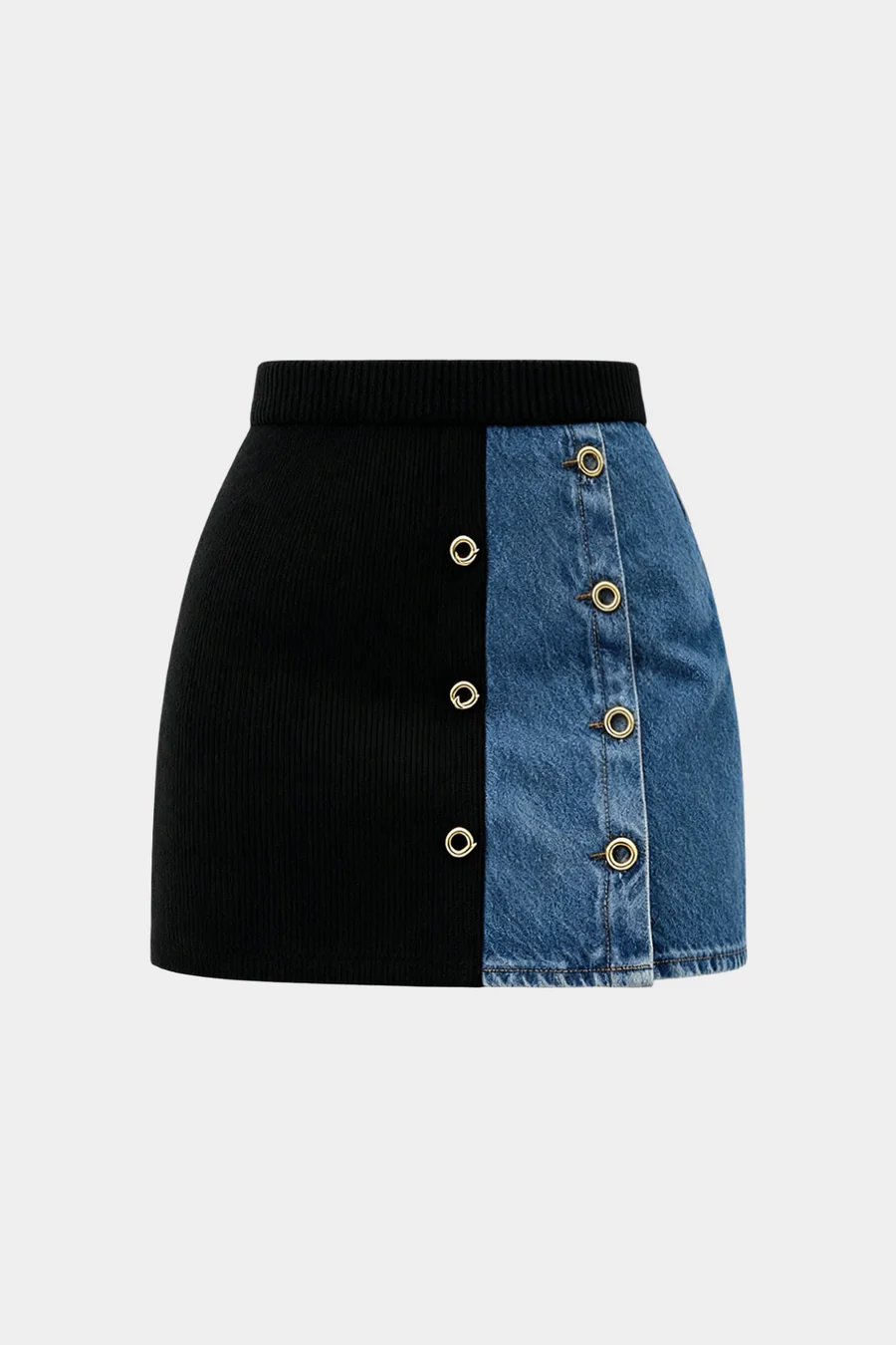 Knit Denim Patchwork Metallic Eyelet Mini Skirt